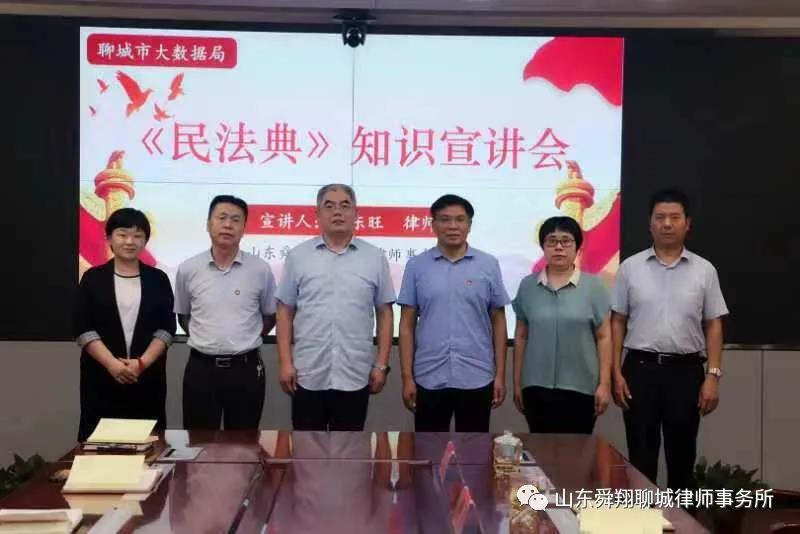 7月16日下午,市民法典宣讲团成员、我所张东旺主任与舜翔(聊城)律所民法典宣讲团成员孙丽茹副主任、秦红燕律师应邀到聊城市大数据局,为聊城市大数据局进行《民法典》宣讲活动,该局全体领导干部及科室工作人员参加活动。